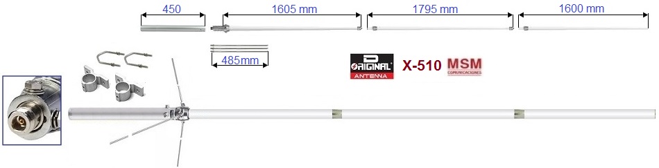 Dimensiones: Antena 3100 mm. Radiales 520 mm. (3 Ud.)