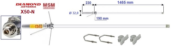 Radiales: 915 mm. x 1 ud. con ajuste para 50 Mhz
